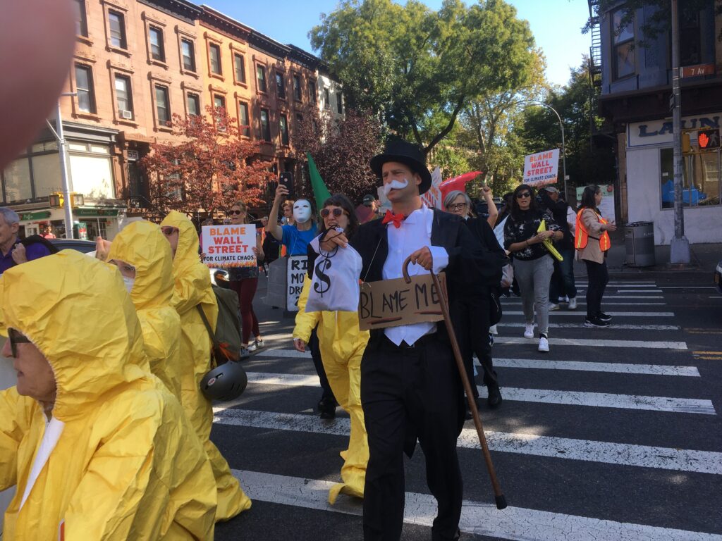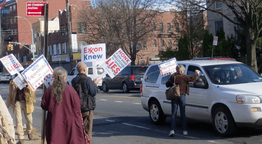 In the fall, we held a teach-in, marched in the Park Slope Halloween Parade with signs that read “Fossil Fuels Are Scary”, and rallied at a local ExxonMobil station for the Exxon Knew campaign.