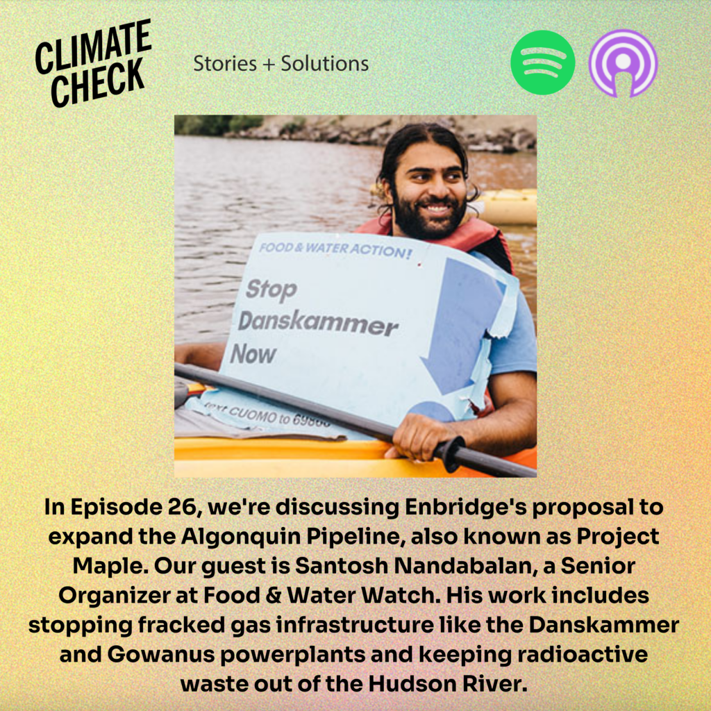 On today's episode, we're discussing Enbridge's proposal to expand the Algonquin Pipeline, also known as Project Maple. Our guest is Santosh Nandabalan. Santosh Nandabalan is a Senior Organizer at Food & Water Watch. Alongside working on state and federal legislation to tackle climate change, Santosh has years of experience managing coalitions and building out strategic […]